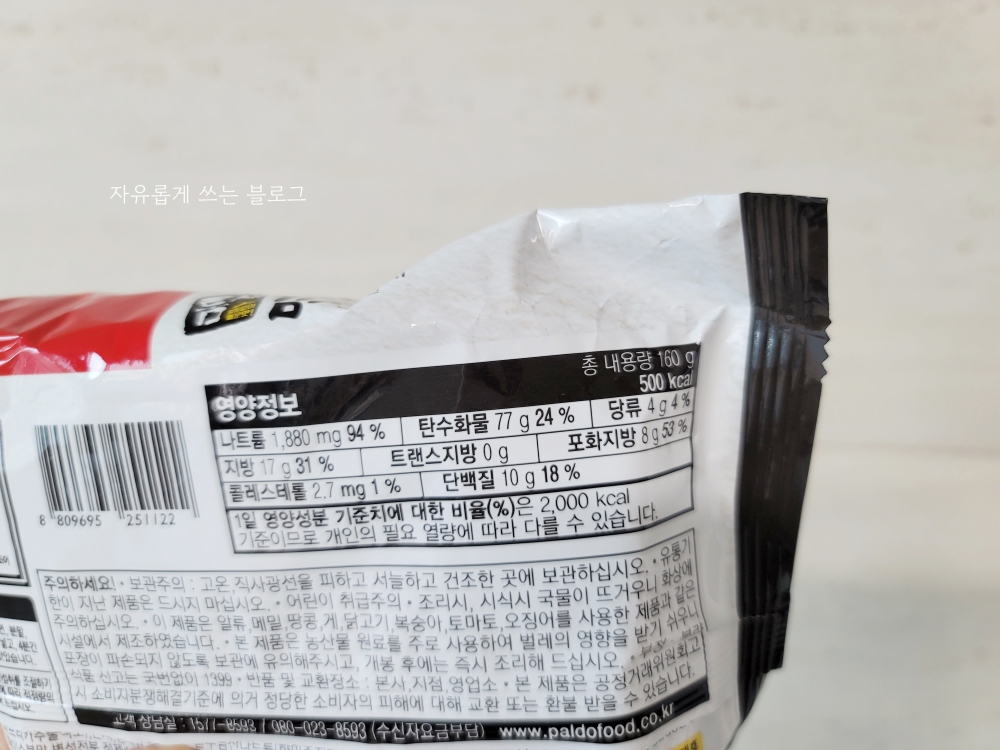 총 내용량 160g에 칼로리는 500kcal입니다.