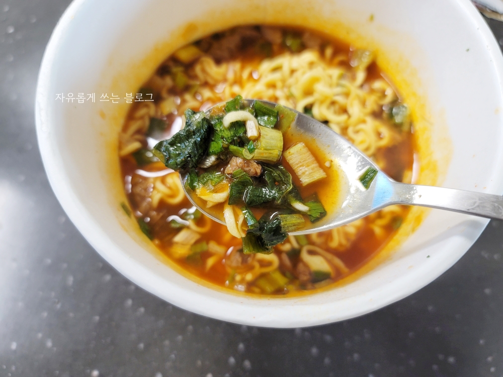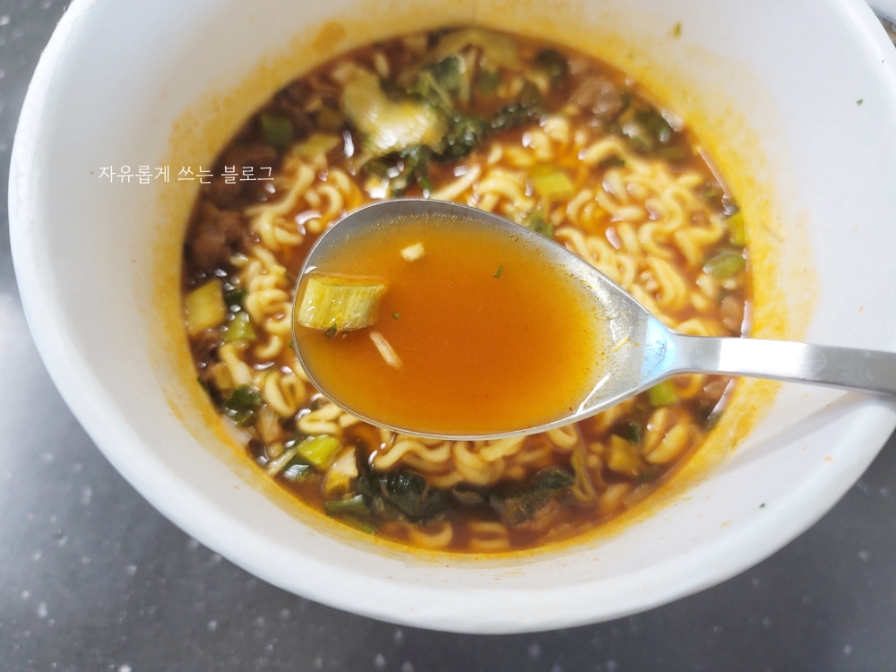 해장라면이라길래 꽤 많이 매울 줄 알았는데 생각보다 많이 맵진 않았고, 살짝 칼칼한 정도였네요.🙂
