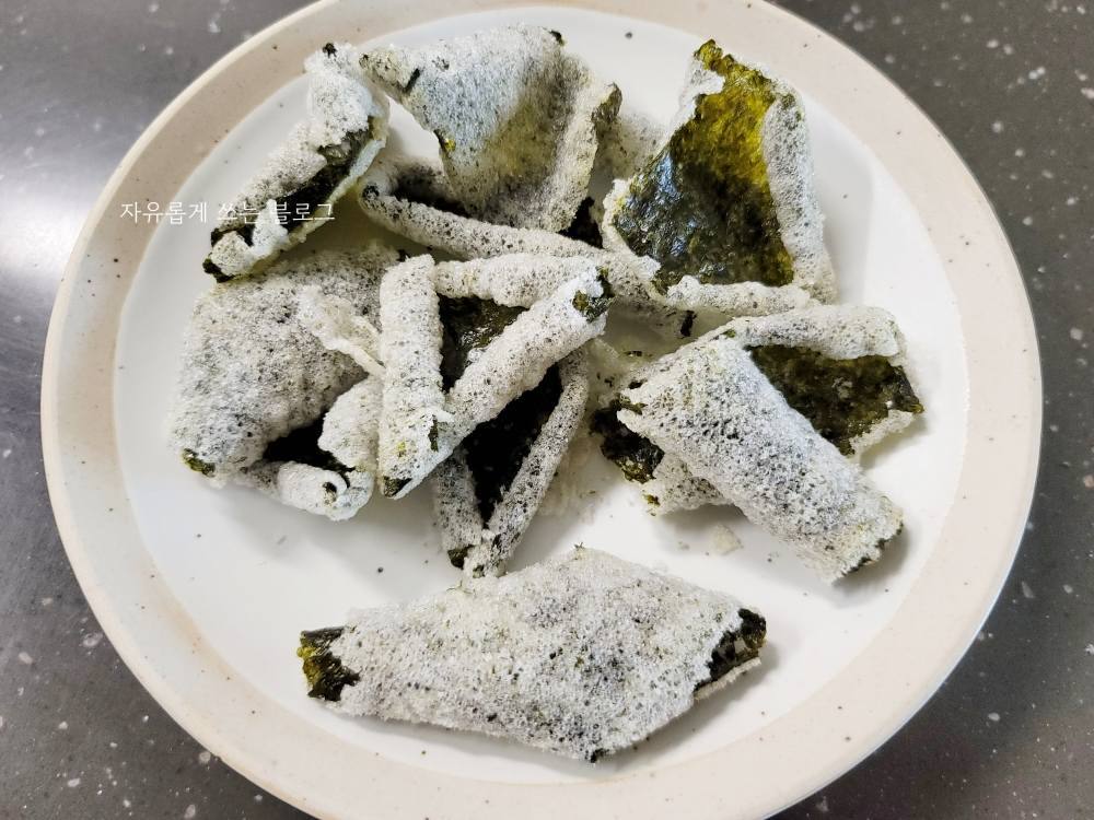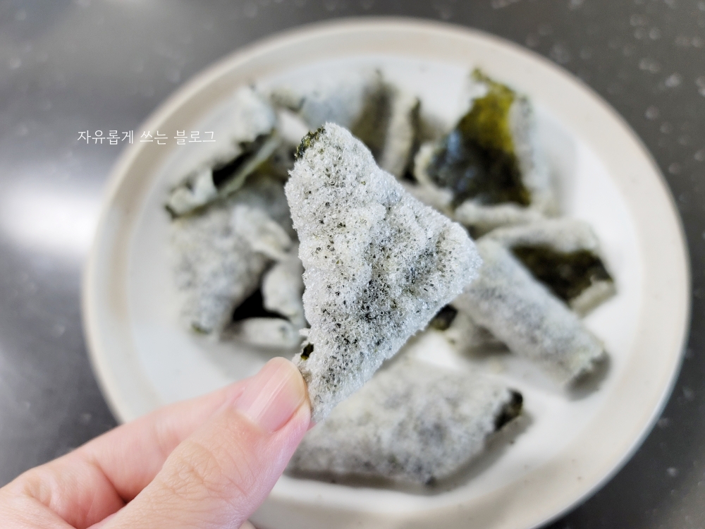 그래도 찹쌀을 하나하나 발라서 전통적인 방식으로 만드는 수제 김부각이 훨씬 맛있긴 한 것 같네요.^^;;