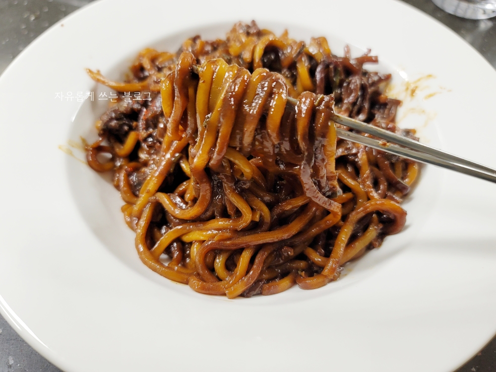고소하면서 짭쪼롬하고, 살짝 달달한 맛의 짜장 소스라 맛나게 먹었답니다.ㅎㅎ