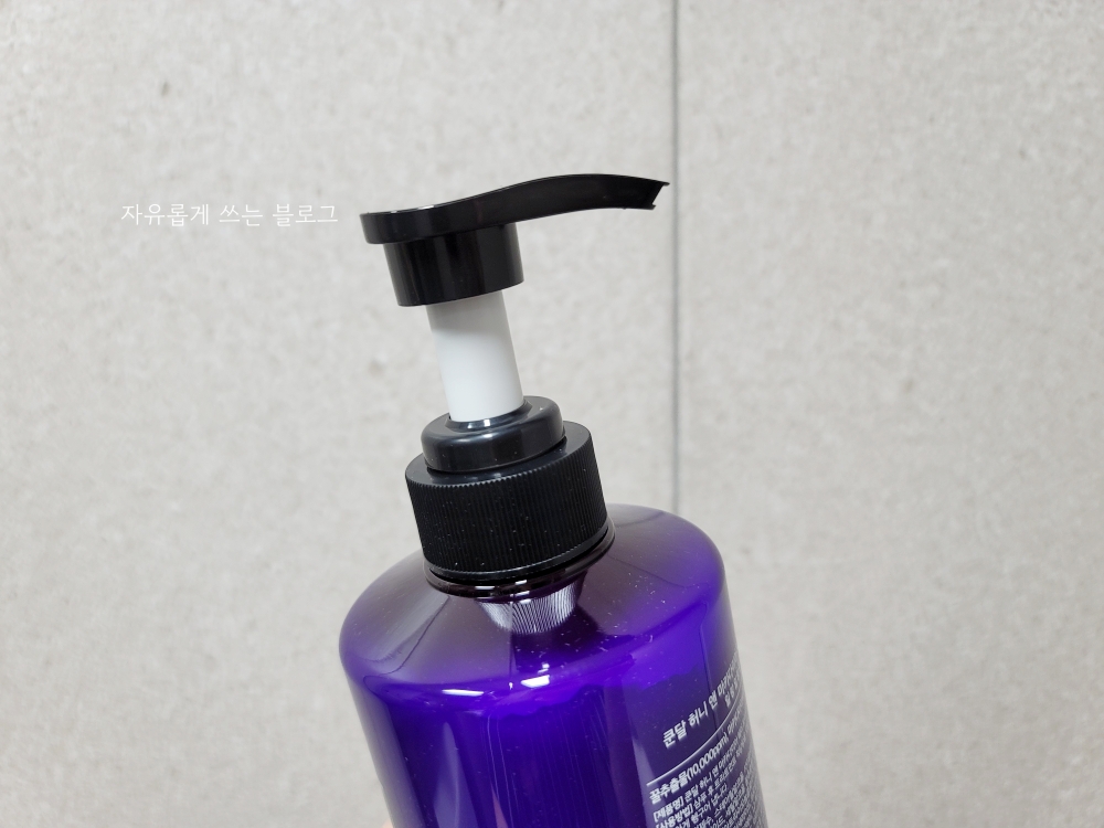 용기 색깔이 쨍한 보라색이어서 욕실에 놓아두니 나름 예쁘더라고요.ㅋㅋ