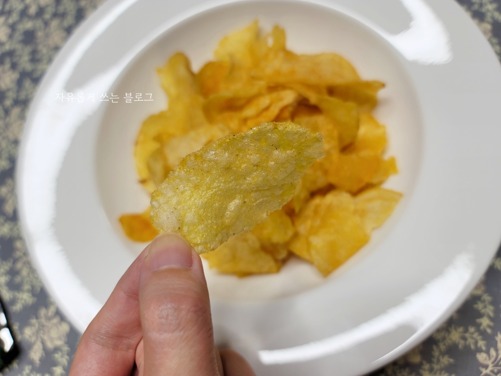 맛을 보자마자 감자칩 식감이 일반 감자칩과는 살짝 다른 느낌이 났어요.