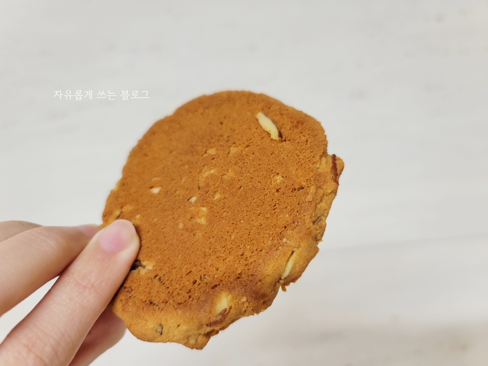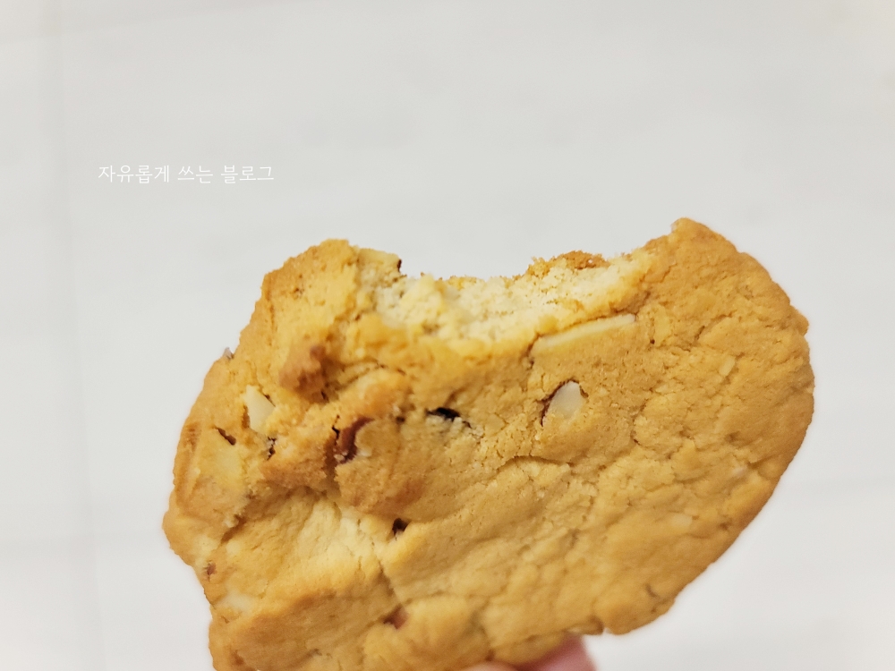 동그란 쿠키에 아몬드와 코코넛 슬라이스가 쏙쏙 박혀 있더라고요.