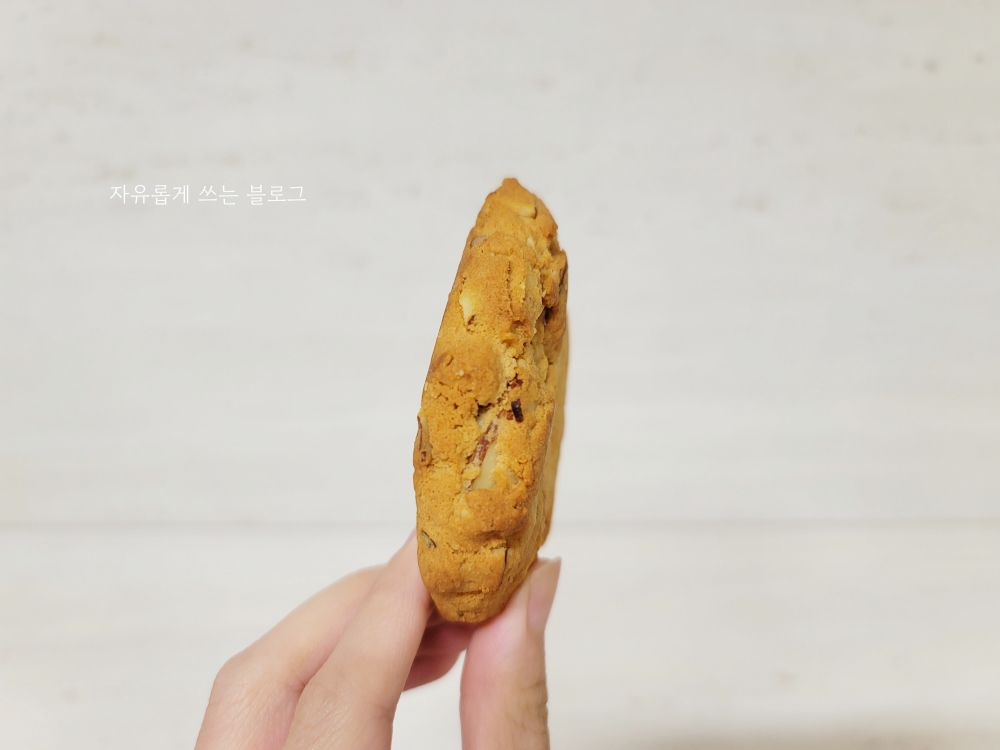 두께를 보면 꽤나 통통한 편인데요, 바삭한 식감의 쿠키라기보다는 부드러운 식감의 쿠키라고 생각하시면 될 것 같습니다.