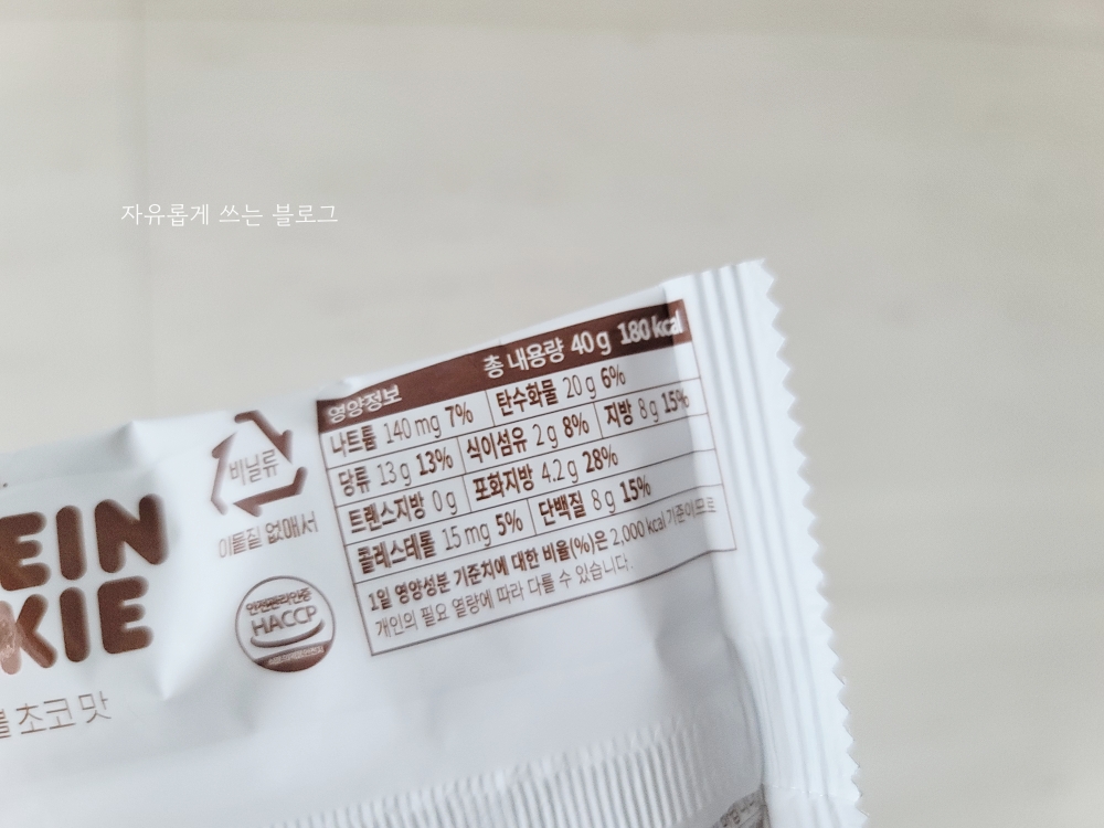 일반 쿠키류는 보통 탄수화물과 당류, 지방 위주이지만 단백쿠키에는 식이섬유와 단백질이 더해져 있어 그나마 좀 더 건강하게 먹을 수 있는 느낌입니다. :)