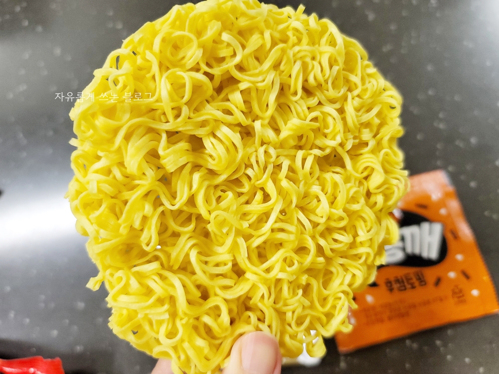 면은 이렇게 생겼습니다. 건면이라 일반 튀긴면과는 약간 다른 느낌입니다.