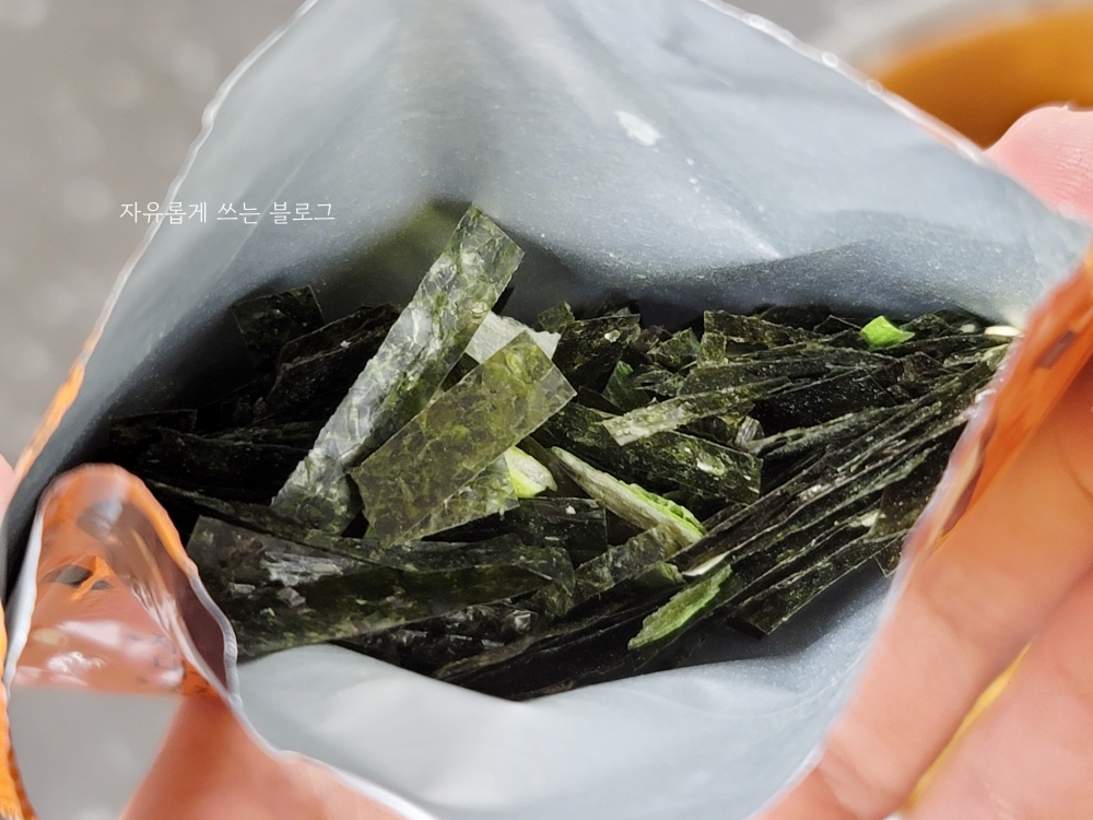 잘게 잘린 김과 동결건조된 파, 참깨 등이 들어 있었습니다. :)