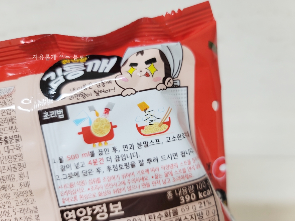 요 제품은 제품 이름이랑 캐릭터가 큼직하게 들어가 있어서 언뜻 보면 라면이 아니고 스낵(?) 같은 느낌도 듭니다.ㅎㅎ