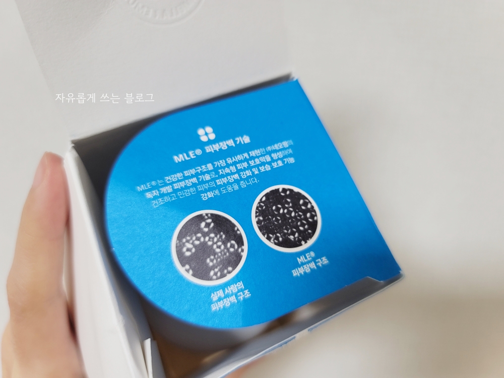 박스를 열다 보니 'MLE 피부장벽 기술' 이라는 설명이 보입니다.