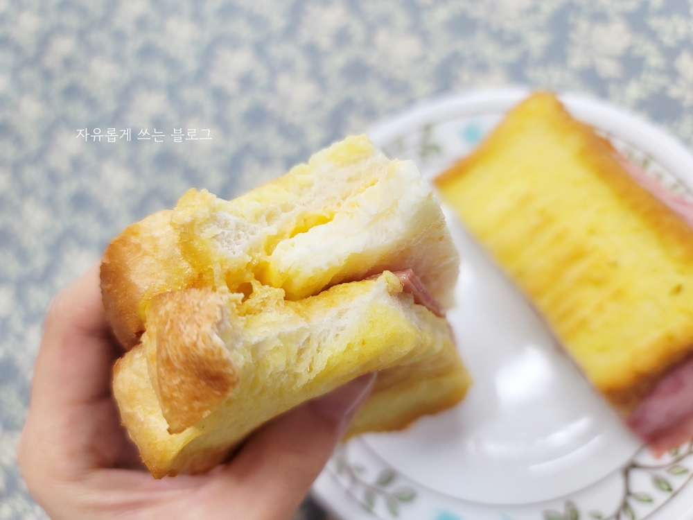 빵 식감은 어느정도 촉촉함이 살아있었고, 계란옷을 입고 있어서인지 퍽퍽함이 거의 느껴지지 않았어요.
