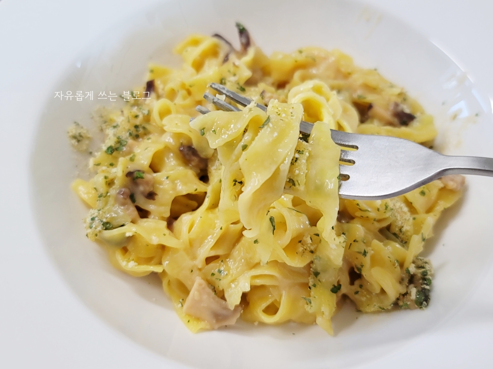 지금까지 농심 파스타랑 버섯크림 조리과정까지 상세하게 보여드렸는데요,