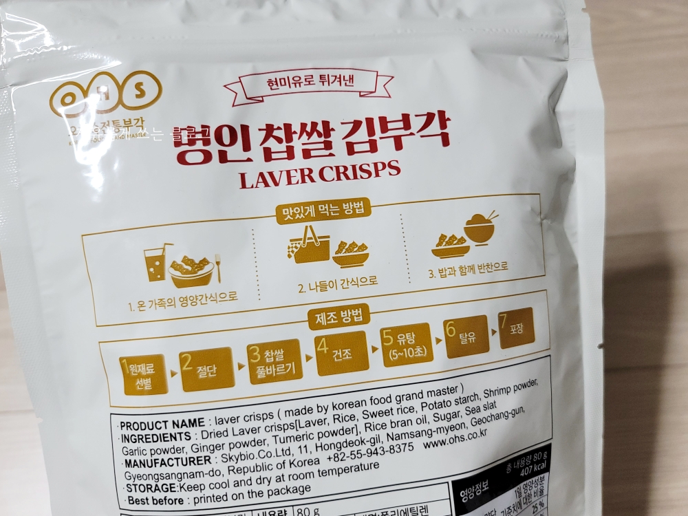 뒷면에는 맛있게 먹는 방법이 적혀 있습니다. 그냥 간식으로 즐겨도 되고, 밥과 함께 반찬으로 드셔도 좋다고 해요.