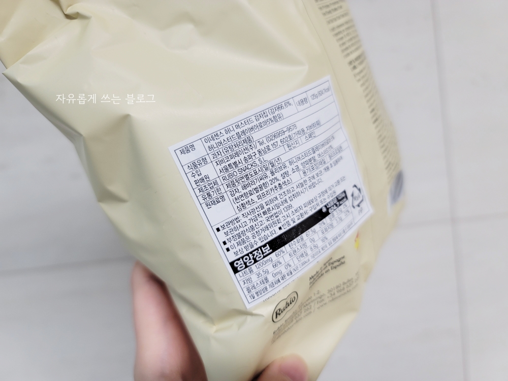 원재료명을 보면 감자, 해바라기씨유, 올리브유, 허니머스타드플레이버아로마가 사용되었다고 합니다.