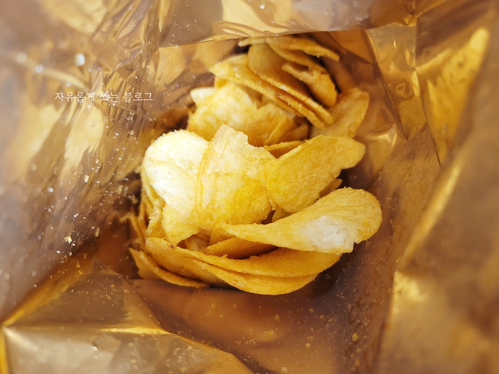 도톰한 두께로 오독오독한 식감을 느낄 수 있으면서도 짭조름한 맛의 감자칩을 선호하는 분들이라면 맛있다고 느낄 수도 있을 듯 해요.