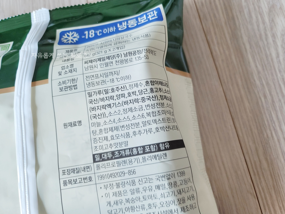 아래 사진 속 제품이 바로 비비고 바지락칼국수입니다.