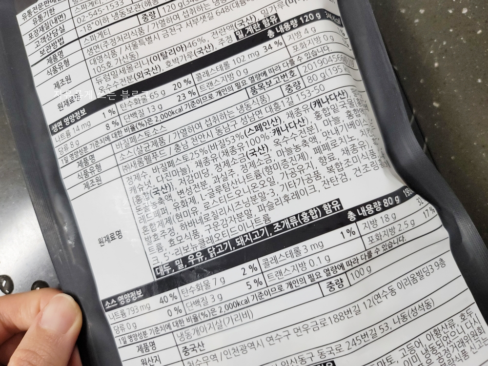 칼로리는 면 346kcal, 소스 195kcal이라고 적혀 있네요.