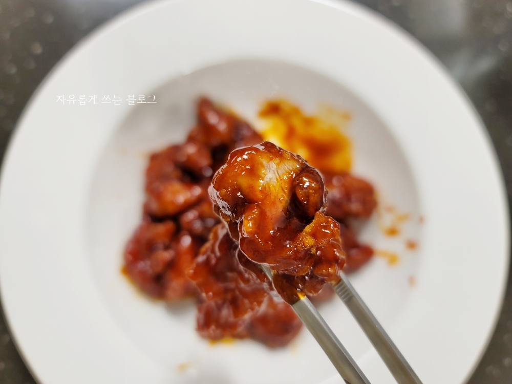 물론 바로 조리해서 제공되는 전문점의 닭강정이나 치킨에 비교하면 아무래도 살짝 아쉽긴 하지만