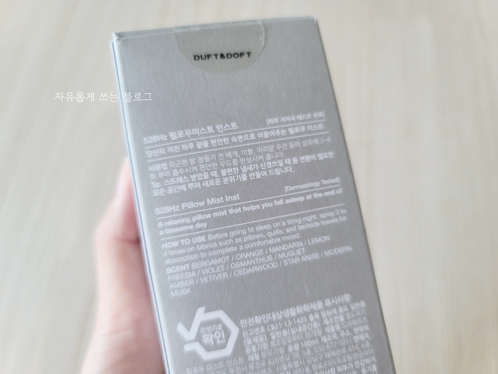 이번 포스팅에서는 요즘 제가 정말 잘 사용중인, 더프트앤도프트 528Hz 필로우 미스트에 대한 후기를 남겨보려고 해요.