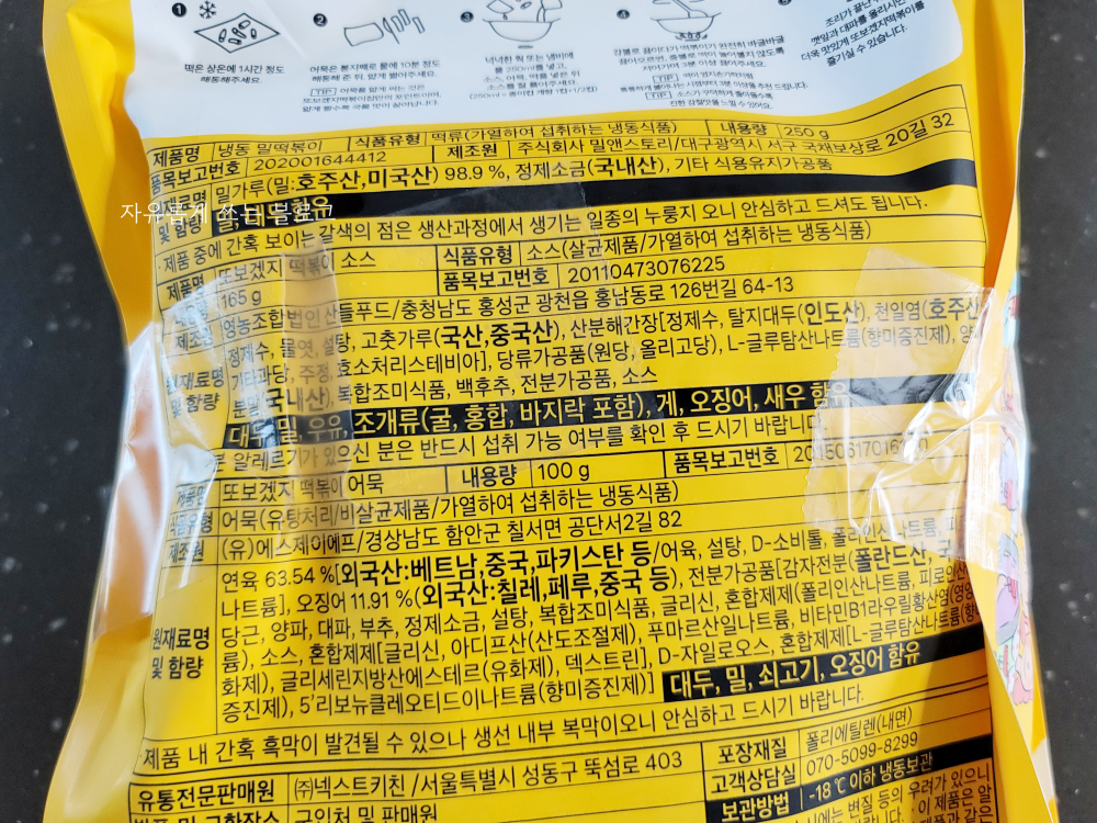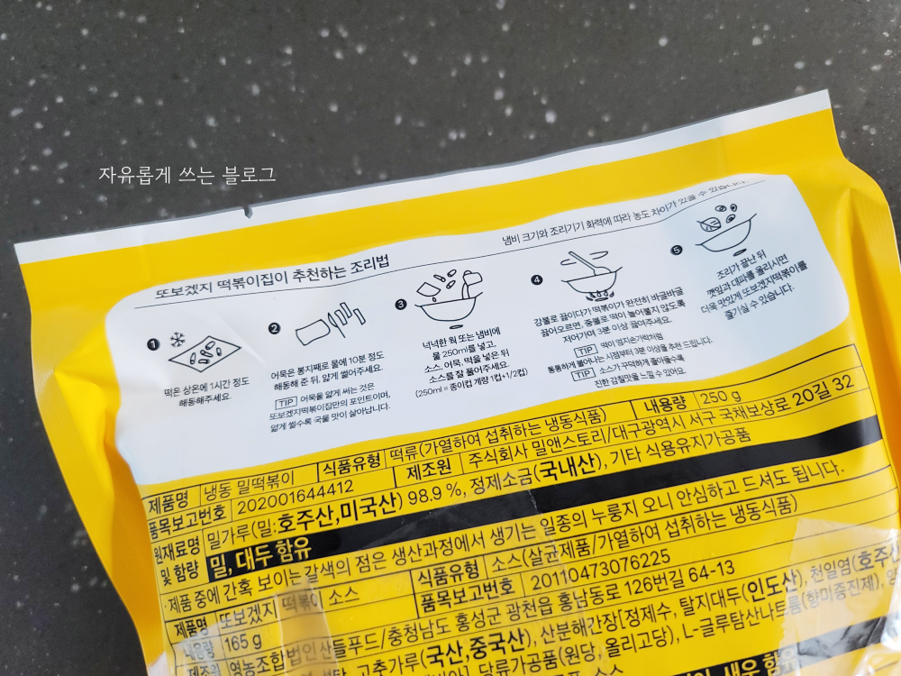 포장 뒷면에는 조리법에 대해 설명이 되어 있어요. 보통 냉동 떡볶이 밀키트 조리법과 거의 비슷합니다.