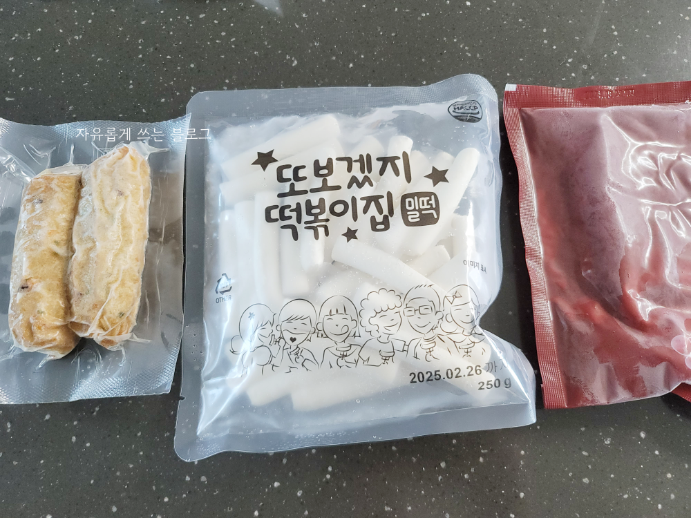 냉동 상태라 미리 해동해서 사용해야 합니다. 떡은 상온에 1시간 정도, 어묵은 봉지째로 물에 넣어 10분 정도 해동해주시면 된다고 해요.