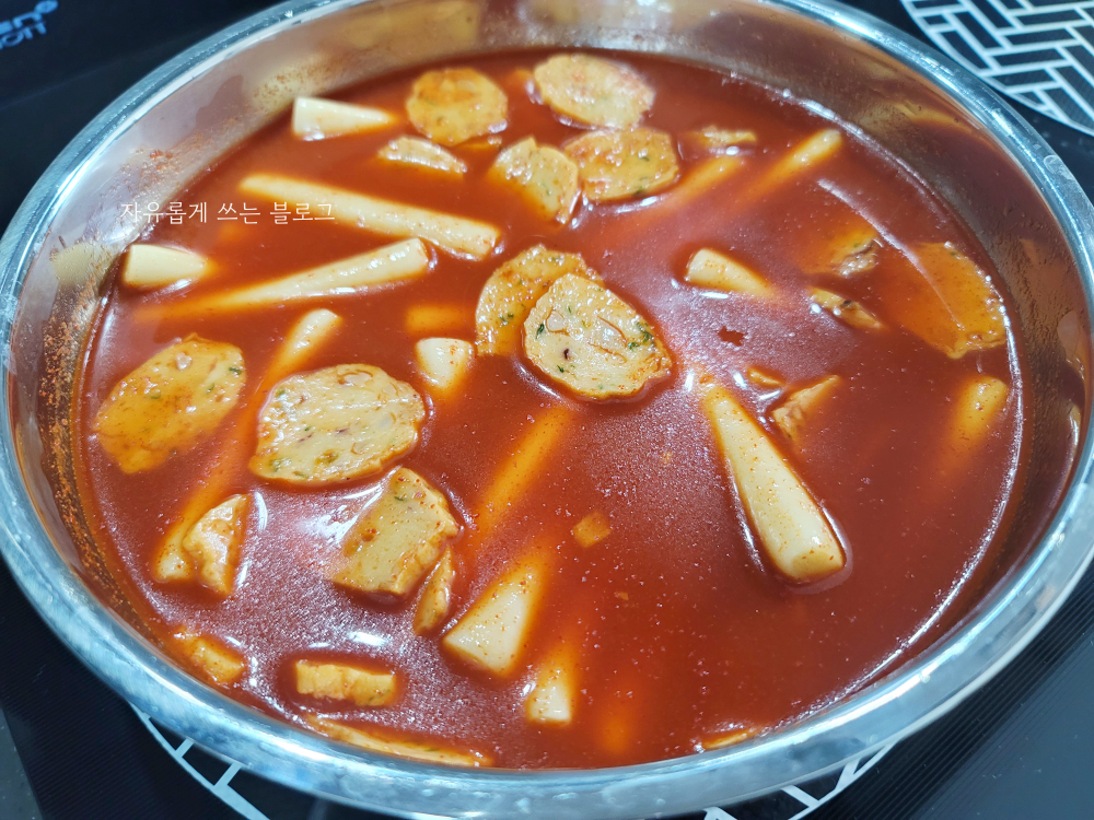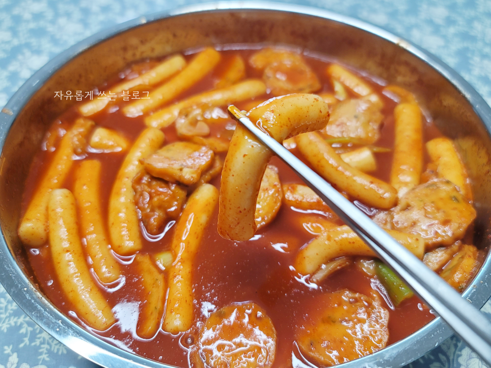 완성하자마자 떡부터 하나 집어 맛을 보았는데요, 쫀득한 밀떡과 함께 진한 감칠맛의 소스 맛이 느껴지더라고요. 너무 맵지 않고 적당히 칼칼하면서, 달콤한 맛도 함께 느껴져서 넘 제 취향이었네요.ㅎㅎ