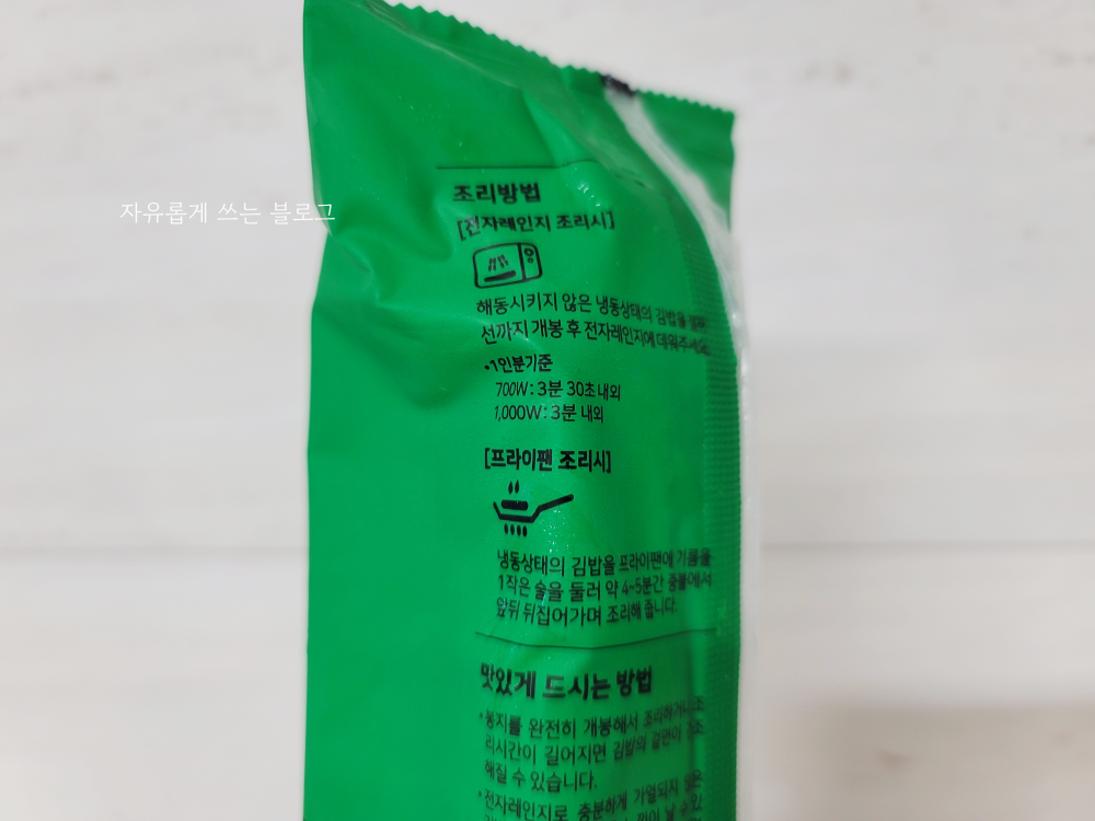 봉지를 완전히 개봉해서 보리하거나 조리시간이 길어지면 김밥 겉면이 건조해질 수 있다고 하더라고요.