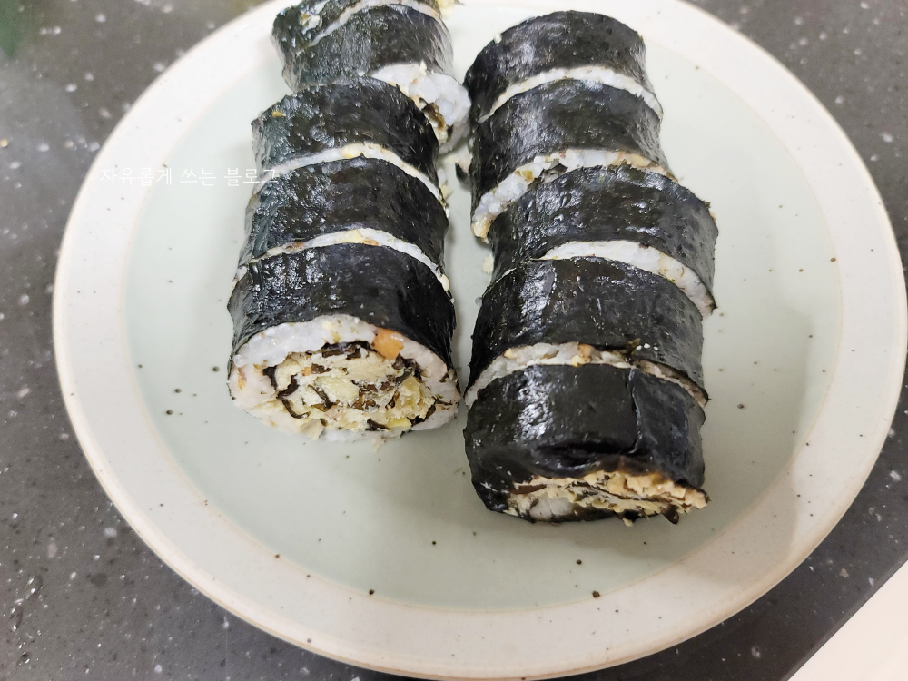 전문점에서 파는 김밥과는 아무래도 차이가 좀 있긴 하지만, 이정도면 그래도 나쁘지 않다는 생각이 듭니다.😊
