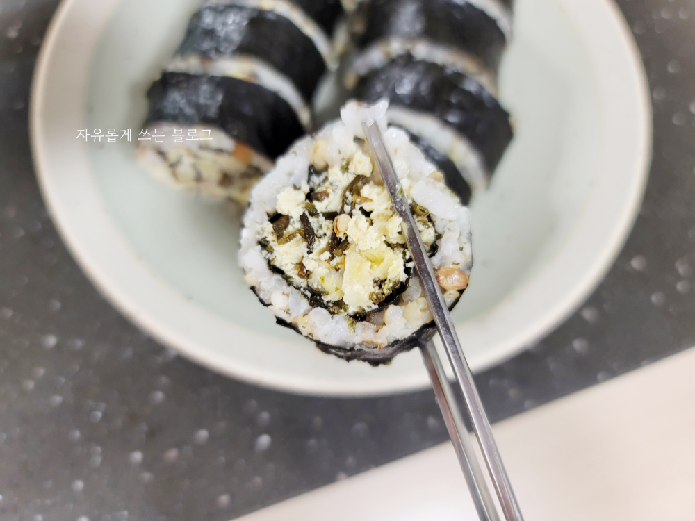 톳이 씹히는 식감이 느껴지는데, 요 식감이 씹는 느낌을 더해줘서 나름 괜찮았던 것 같아요.