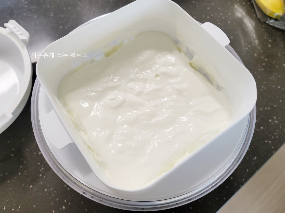 그냥 붓고 기다리기만 했는데 어느새 완성된 그릭요거트!! 면보로 만들던걸 생각하면 진짜 편리하고 좋은 것 같아요.