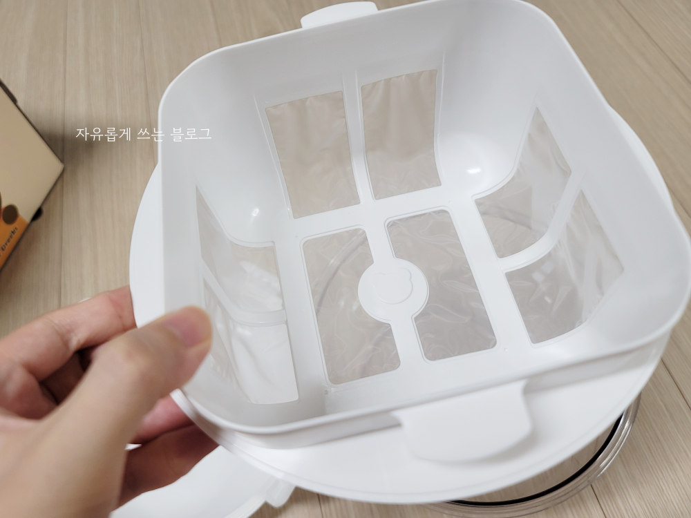 요거트를 담는 필터 부분입니다. 면보 역할을 하는 거라고 보면 되는데요. 나일론으로 만들어졌다고 해요.