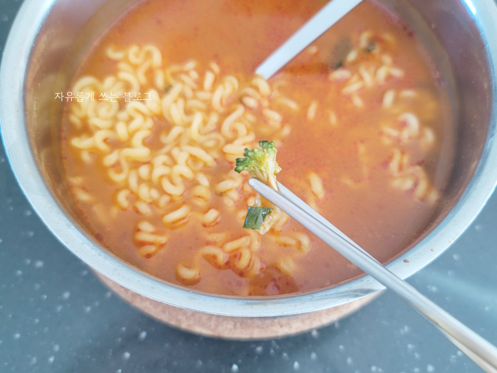 먹어보니 브로콜리 맛이 느껴지는데, 국물이랑 넘 잘 어울렸어요. 좀 더 넉넉하게 들어있었더라면 더 좋았을텐데 살짝 아쉽습니다.