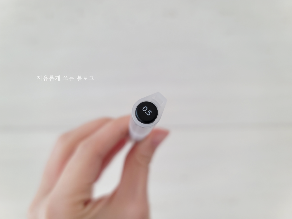 뚜껑에는 펜 굵기가 적혀 있네요. 제가 구매한건 0.5mm짜리입니다. (더 얇은 0.38mm짜리도 있어요.)