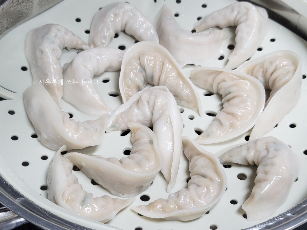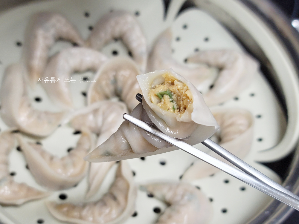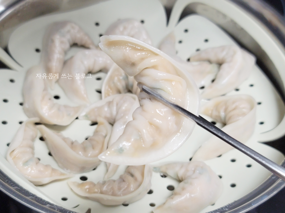 두가지 다 해 봤는데 역시나 찜통에 쪄서 먹는게 촉촉하니 맛있습니다. 전자레인지는 제가 스킬이 부족한건지 만두피가 좀 딱딱하게 조리가 되어서 맛이 떨어지더라고요.😭