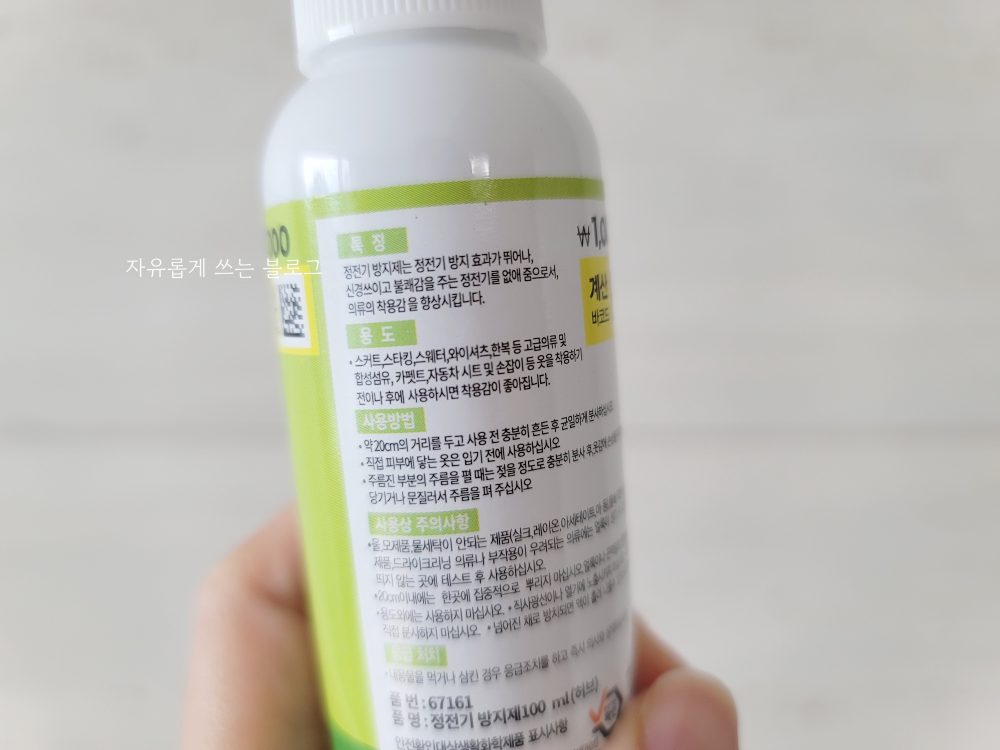 정전기 방지에 구김방지 효과까지 있다고 합니다. 용량이 100ml라 휴대하고 다니면서 사용하기에도 좋아요.