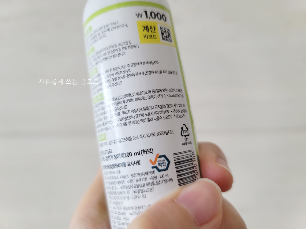 찾아보니 제가 구매한 '허브향 정전기 방지제' 말고도 몇 종류 더 있는 듯 하더라고요. (좀더 큰 용량 제품도 있음!)
