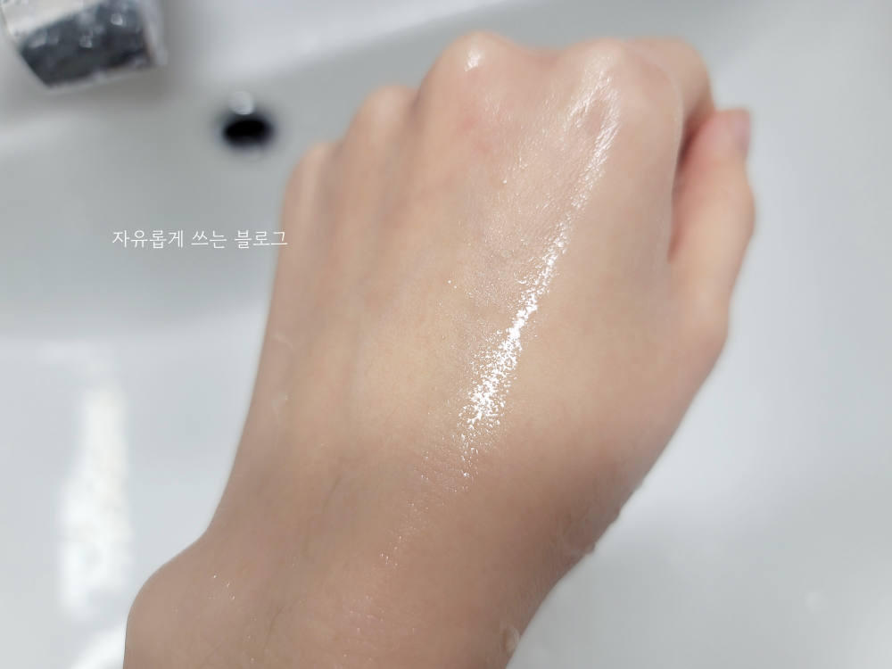 손등에 살짝 덜어본 모습입니다. 제형은 꾸덕하다기보다는 부드러운 편에 속하는 질감이었어요.