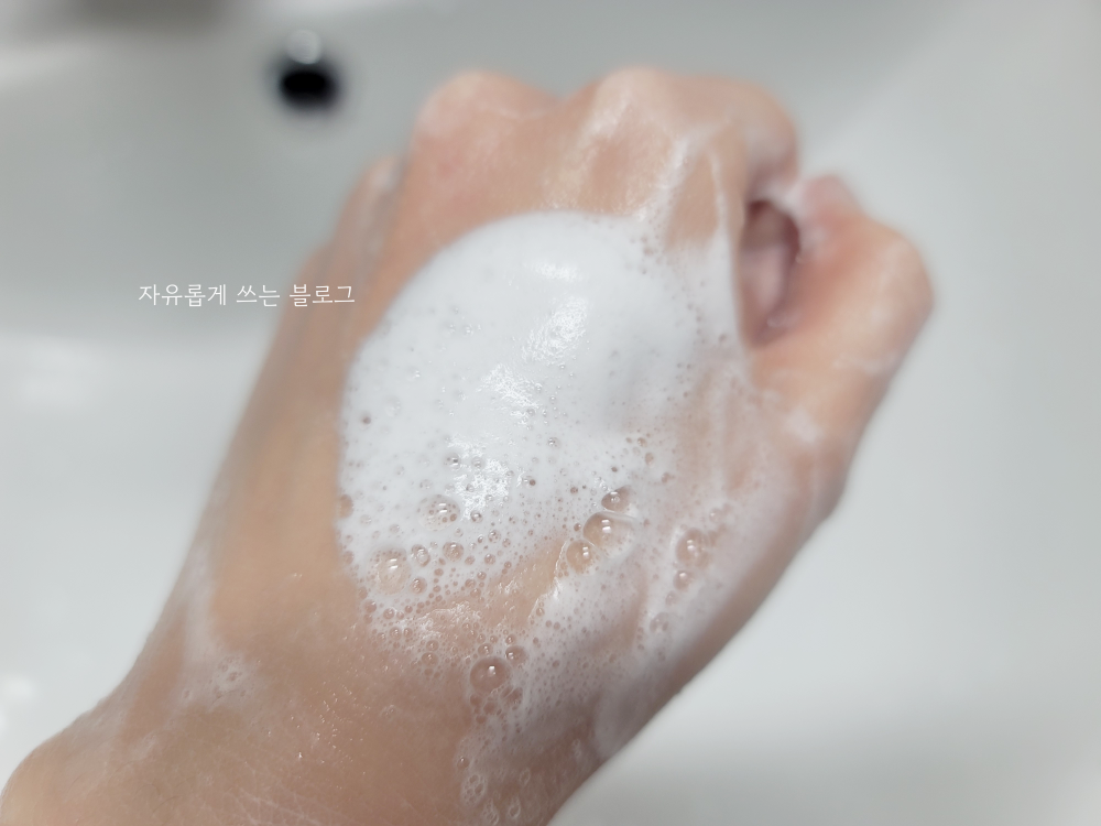씻어내고 난 뒤의 모습입니다. 실제로 얼굴에 사용해보면 상당히 개운한 느낌으로 마무리가 됩니다.