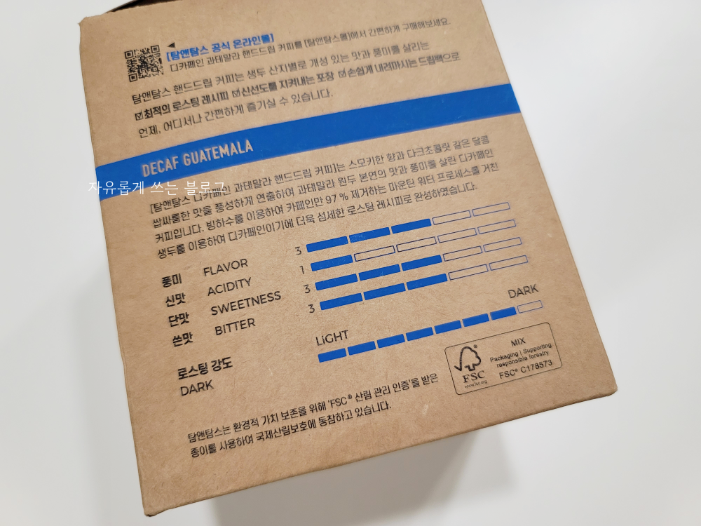 이번 포스팅에서는 얼마전 인터넷으로 직접 구매해 맛본, 탐앤탐스 디카페인 과테말라 핸드드립 커피에 대한 솔직한 리뷰를 남겨보려고 합니다.