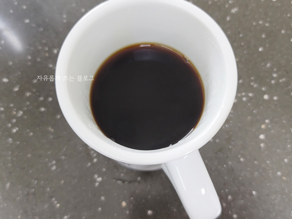 뜨거운 물을 부어 커피를 내려준 뒤의 모습이에요.