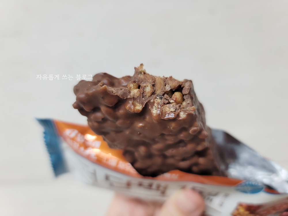 맛을 보니 바삭한 식감과 함께 진한 초코맛이 느껴졌어요. 아무래도 초코 맛이 베이스이다보니 거부감 없이 맛있게 먹을 수 있었답니다.