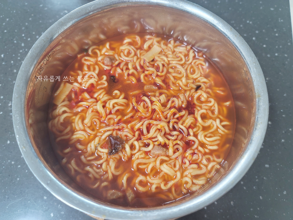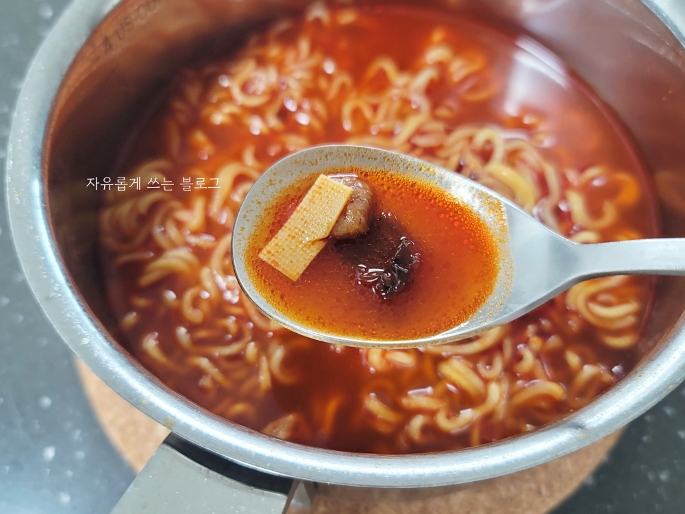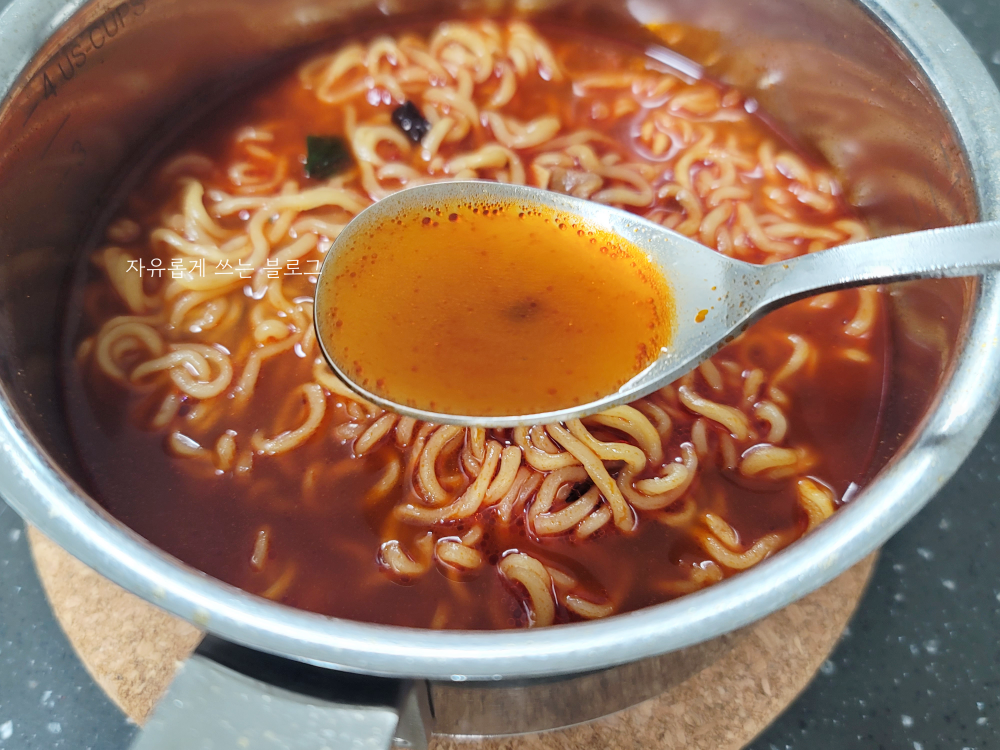맵기만 놓고 보면 거의 불닭볶음면 정도 였던 것 같습니다. 신라면보다는 약간 더 매운 정도..?