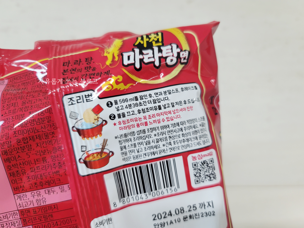 아래 사진 속 제품이 바로 홈플러스 익스프레스에서 구매한 농심 사천 마라탕면입니다.