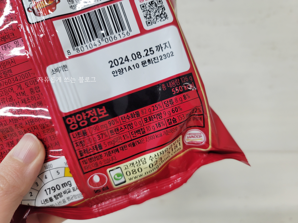 영양 정보가 나와 있는 부분도 찍어 보았네요. 총 내용량 126g에 칼로리는 550kcal입니다.