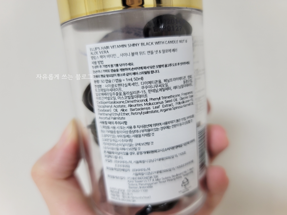 정식 명칭은 '엘립스 헤어비타민 샤이니 블랙 위드 캔들 넛 & 알로에 베라' 라고 되어 있네요.