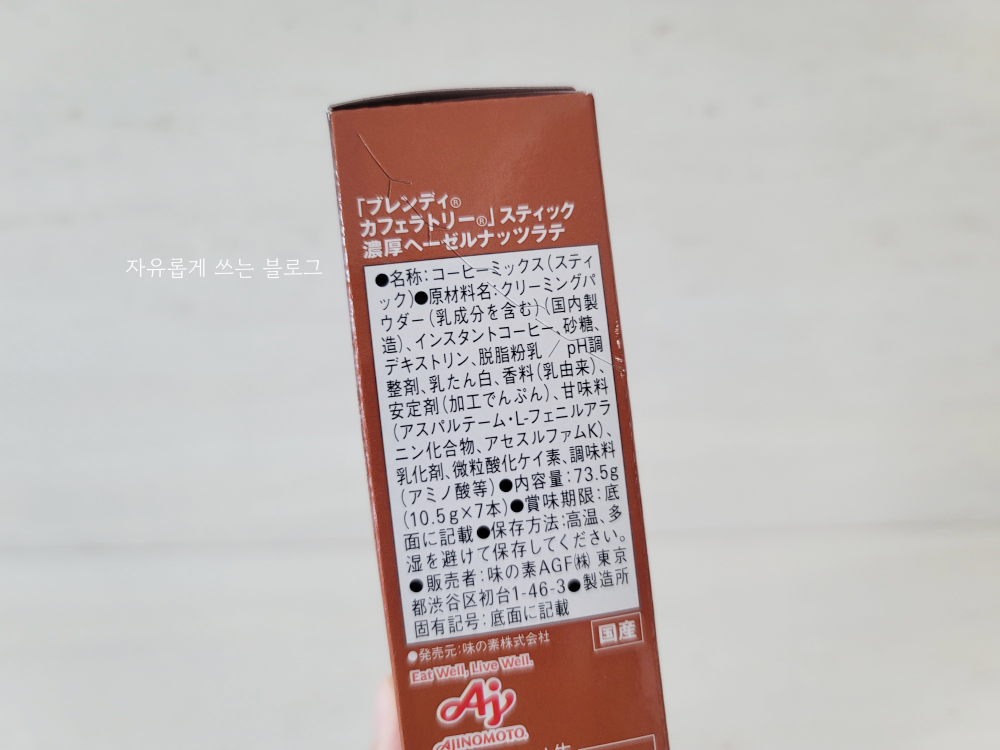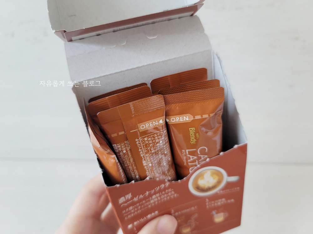 아래 사진 속 제품이 제가 사가지고 온 일본 믹스커피, '블렌디(Blendy) 카페라토리 헤이즐넛 라떼'입니다.