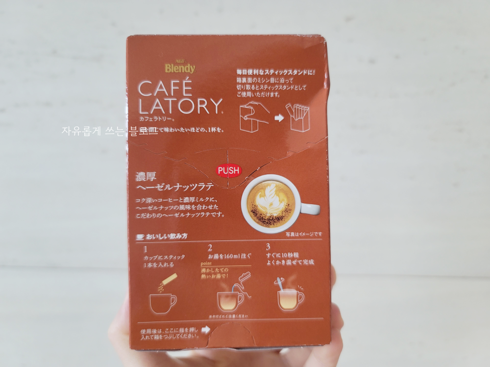 어쨌든 맛은 무난무난 괜찮은 편이니, 커피믹스를 좋아하는 분들이라면 일본 믹스커피, 카페라토리 헤이즐넛 라떼 한번쯤 맛보셔도 나쁘진 않을 것 같습니다.