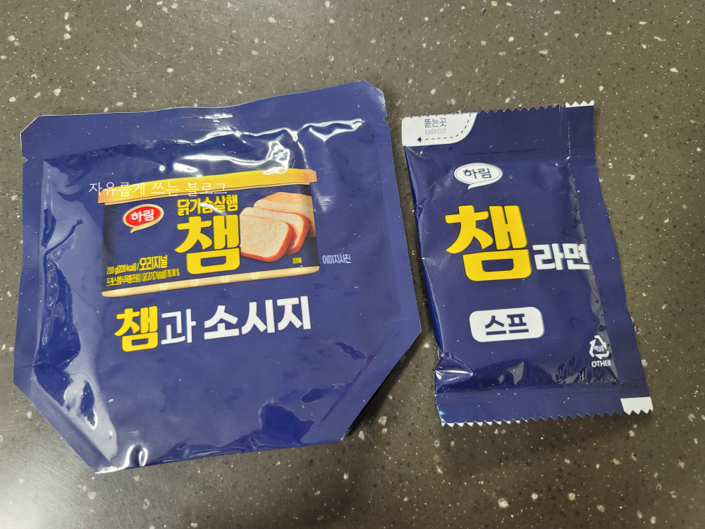 챔라면은 닭가슴살 햄으로 유명한 '챔'을 넣어 만든 부대찌개 라면인데요. 출시된지는 조금 되었는데 이제야 맛보게 되었네요.😅