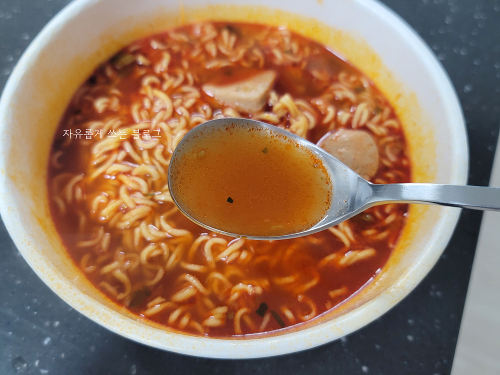 맛을 보니 평소에 부대찌개를 좋아하는 분들이라면 누구나 맛있게 드실 수 있을만한 라면이라는 생각이 들었는데요.