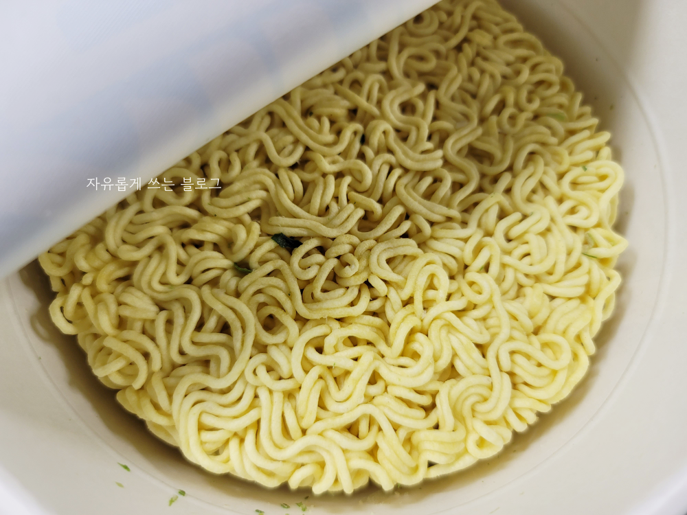 면과 건더기 스프는 이렇게 컵 안에 들어가 있어요.