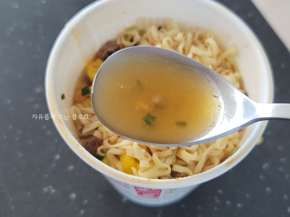 개인적으로는 국물 맛이 살~짝 아쉽긴 했지만, 무난무난하게 맛있게 먹을 수 있는 컵라면이 아니었나 싶습니다.